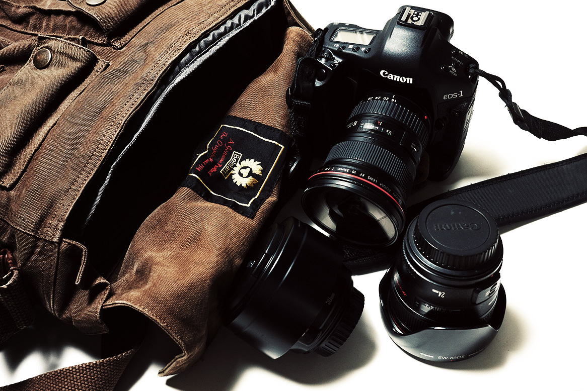 That's a Tenba Messenger Bag Insert with Canon 1DsmkIII, 16-35L f/2.8 II attached, 24L f/1.4 II and 50L f/1.2.